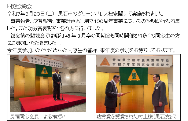 青森県立柏木農業高等学校の同窓会活動を紹介しています。