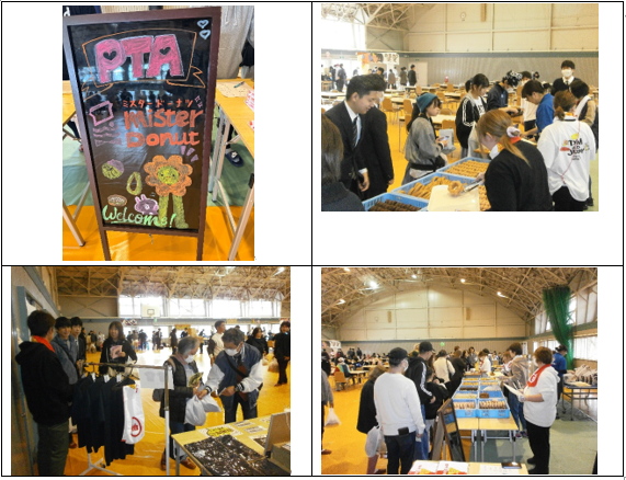 〇令和7年11月2日(日)【一般公開】 〜柏農祭〜12名の保護者の方に参加していただき、今年度はミスタードーナツの販売と創立100周年記念グッズの販売を行いました。参加いただいた保護者の皆様のおかげで大盛況となりました。今年度は3年生の模擬店を同じ会場の第二体育館で販売しましたので、ドーナツが特に大盛況で即完売となってしまいました。ご来場いただいた皆様ならびにご協力いただいたPTAの皆様のご協力に感謝いたします。