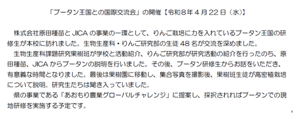 柏木農業高校農業クラブより今年度の記事を更新しました。